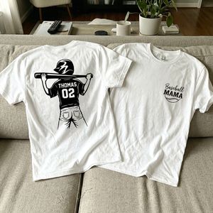 BMSM10 BMSM15 BMSM20 Step up your game-day style and show your pride from the stands with this personalized double-sided baseball shirt. Designed to capture attention with its bold player silhouette on the back and classic “Baseball Mama” front detail, this shirt celebrates the heart of every baseball family. Customize it with your player’s name and number to create a meaningful, one-of-a-kind piece you’ll love wearing all season long. Whether you're cheering at little league games or supporting from afar, this shirt blends comfort, style, and personal connection—making it a must-have for every proud mom or grandma.