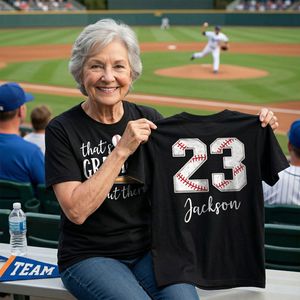 BMSM10 BMSM15 BMSM20 Show your pride loud and proud from the stands with a personalized shirt made for the ultimate baseball or softball supporter. This double-sided design features a heartfelt front message and a custom back with your grandson’s name and jersey number—making every game feel even more special. Whether you're cheering, snapping photos, or celebrating big plays, this shirt lets everyone know exactly who you're there for.